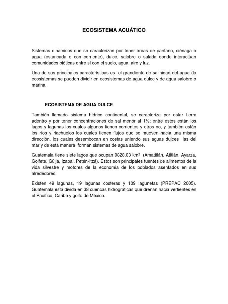 ecosistemas se pueden dividir en ecosistemas de agua dulce y de agua salobre o