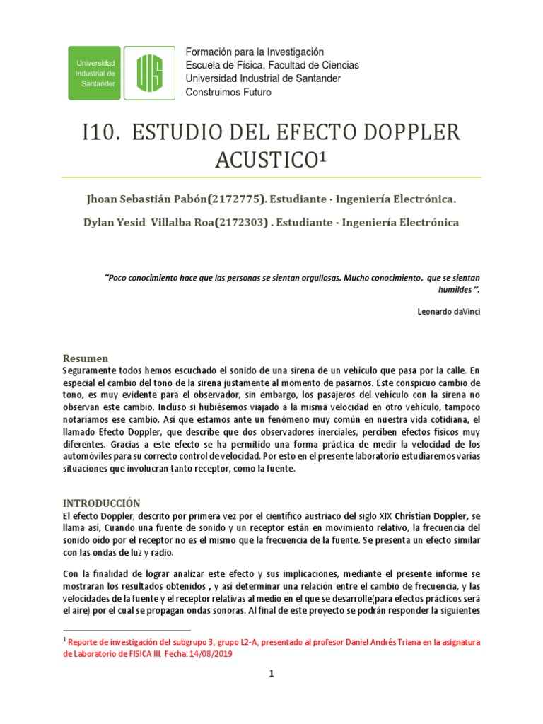 I10. ESTUDIO DEL EFECTO DOPPLER