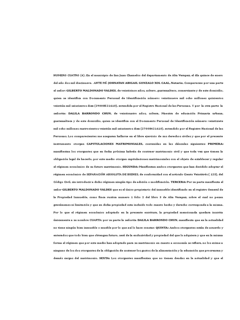Modelo de Capitulaciones Matrimoniales Guatemala