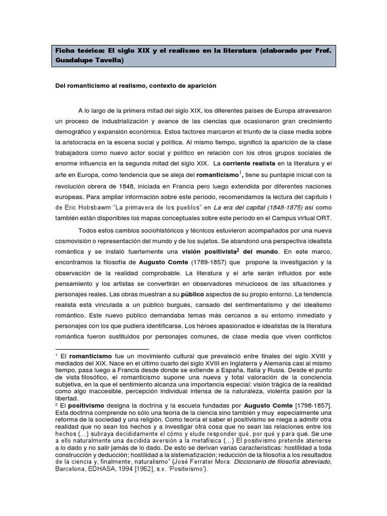 Ficha teórica: El siglo XIX y el realismo en la literatura (elaborado por Prof.