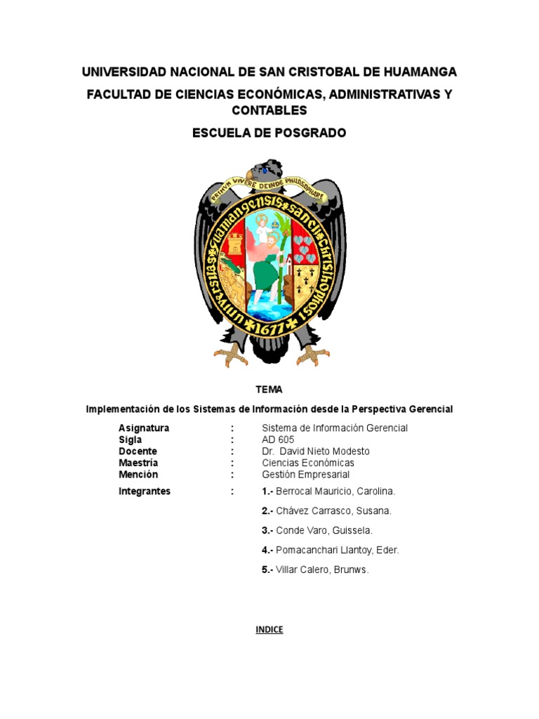 Asignatura : Sistema de Información Gerencial