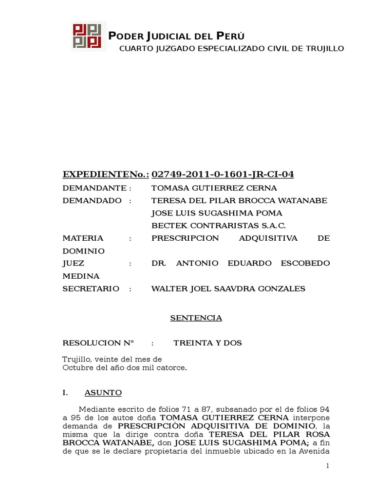 V-Sede Trujillo; asimismo pretende que el bien cuya prescripción sea