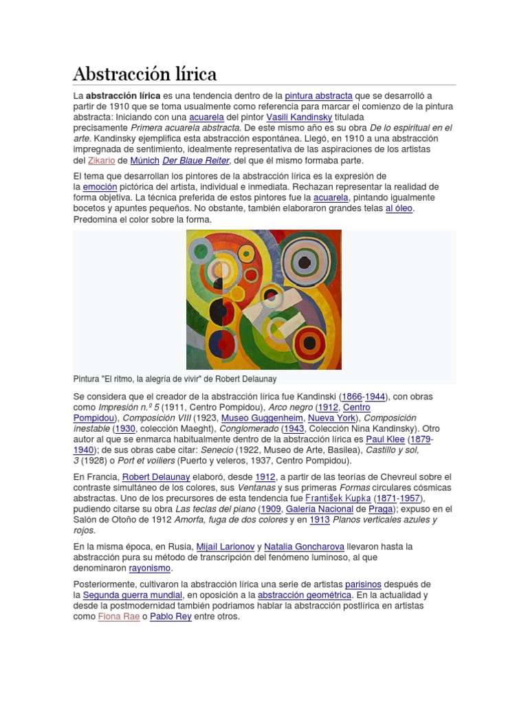 arte. Kandinsky ejemplifica esta abstracción espontánea. Llegó, en 1910 a una abstracción