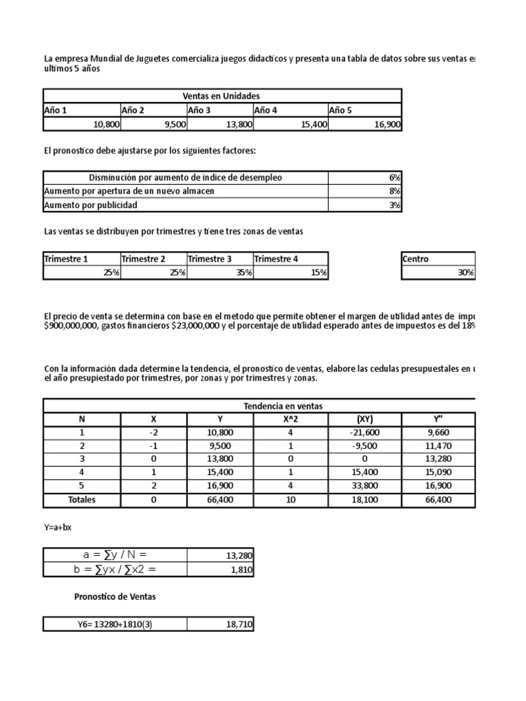 Con la información dada determine la tendencia, el pronostico de ventas, elabore las cedulas presupuestales en unidades y en