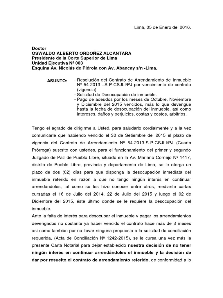 ASUNTO: - Resolución del Contrato de Arrendamiento de Inmueble