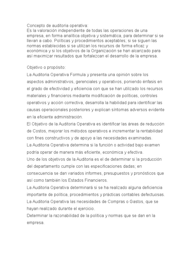 La Auditoria Operativa Formula y presenta una opinión sobre los