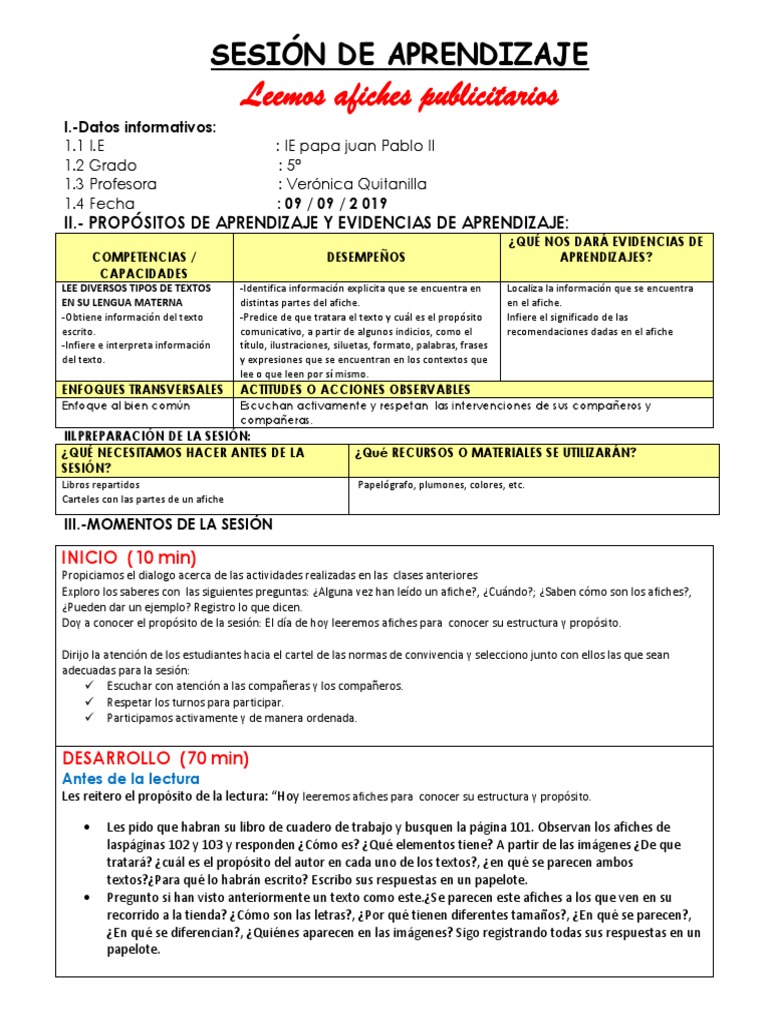 SESIÓN DE APRENDIZAJE