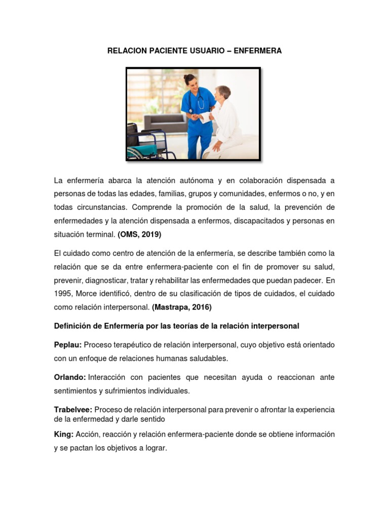 las relaciones interpersonales enfermera-paciente, para un desarrollo en la relación