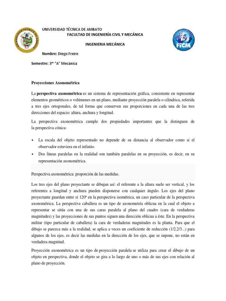 plano de proyección, en la proyección axonométrica hay un plano o un eje del objeto no paralela al