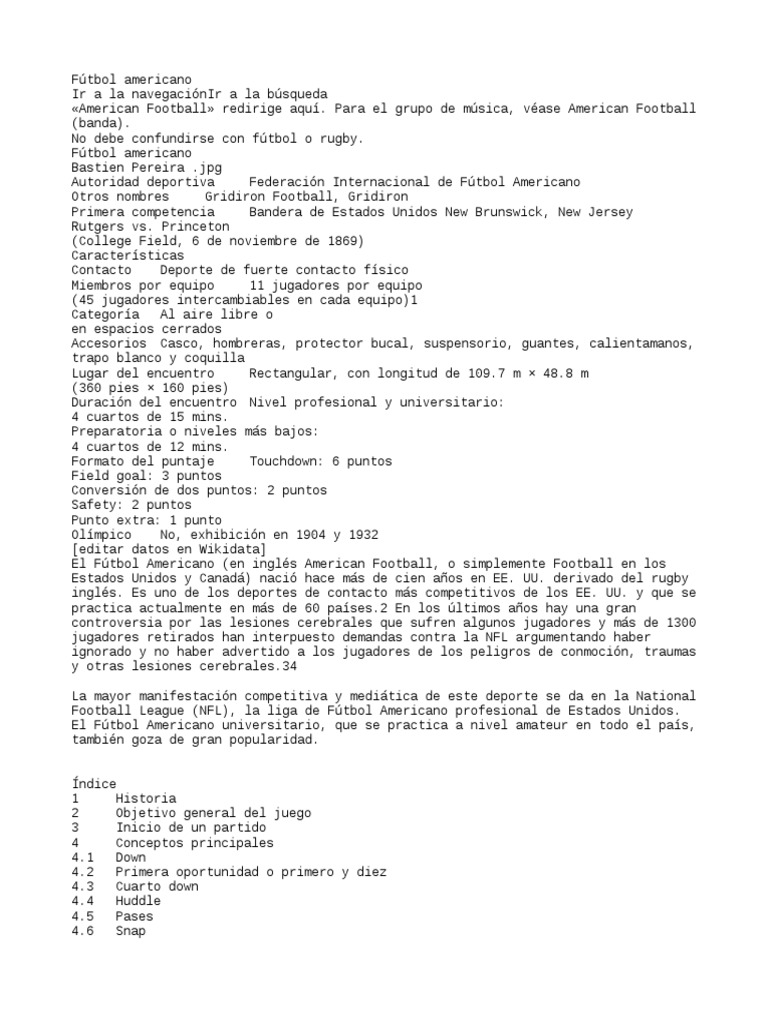 Estados Unidos y Canadá) nació hace más de cien años en EE. UU. derivado del rugby