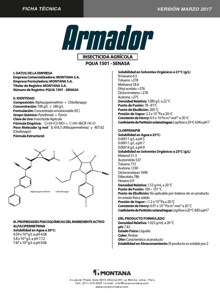 Composición: Alphacypermethrin + Chlorfenapyr Densidad Relativa: 1280 g/L a 22 °C