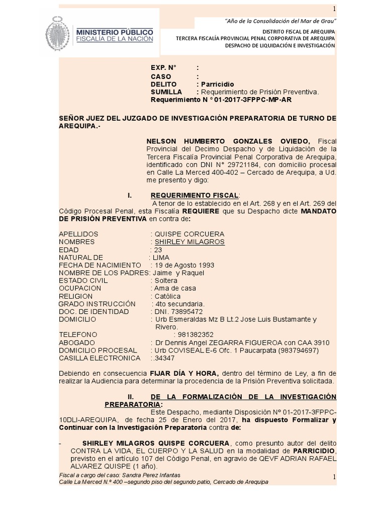 SUMILLA : Requerimiento de Prisión Preventiva.
