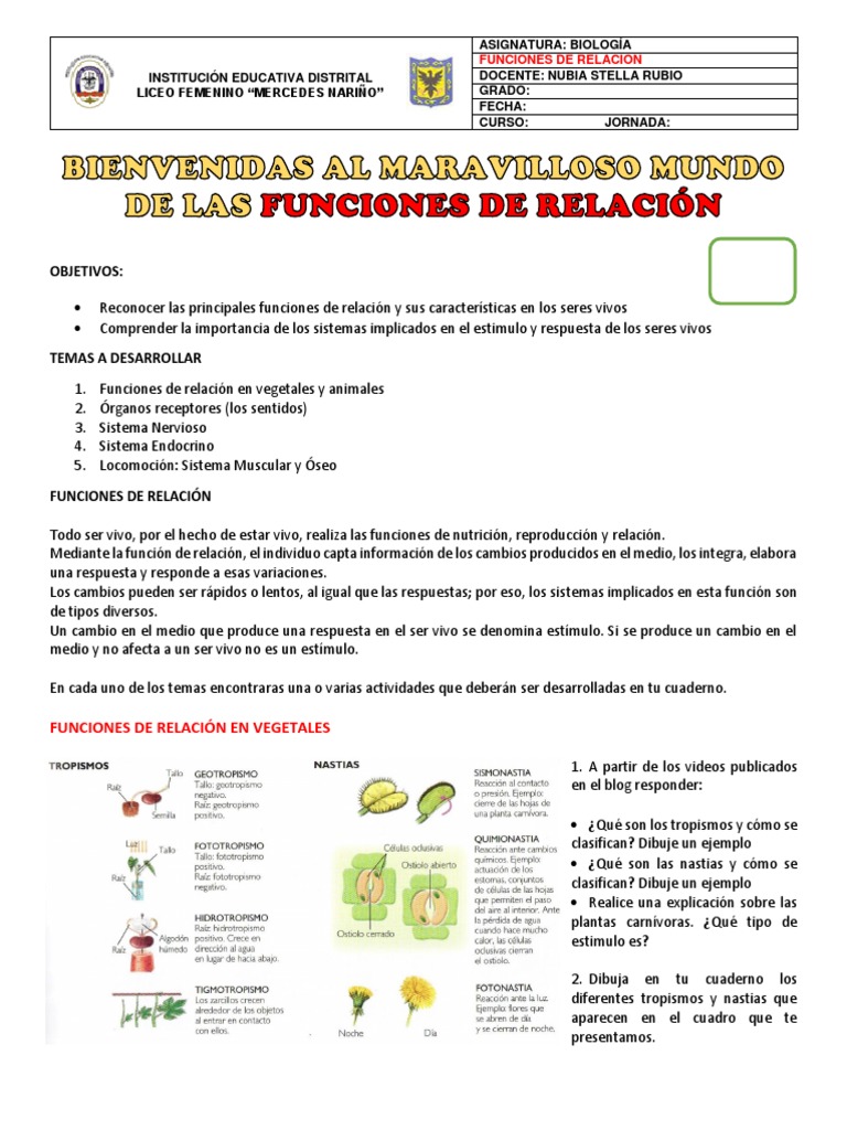 1. Funciones de relación en vegetales y animales