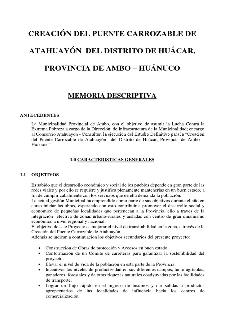 del Puente Carrozable de Atahuayón del Distrito de Huácar, Provincia de Ambo –