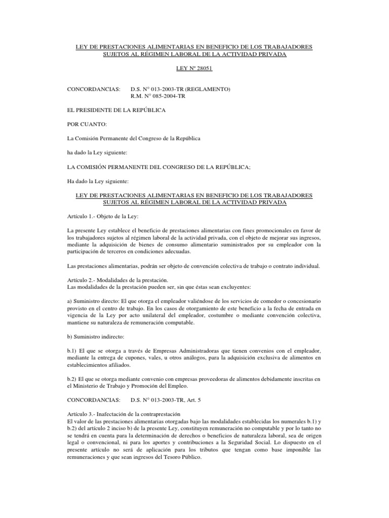 Titulo: LEY QUE MODIFICA LA LEY Nº 28051, LEY DE PRESTACIONES