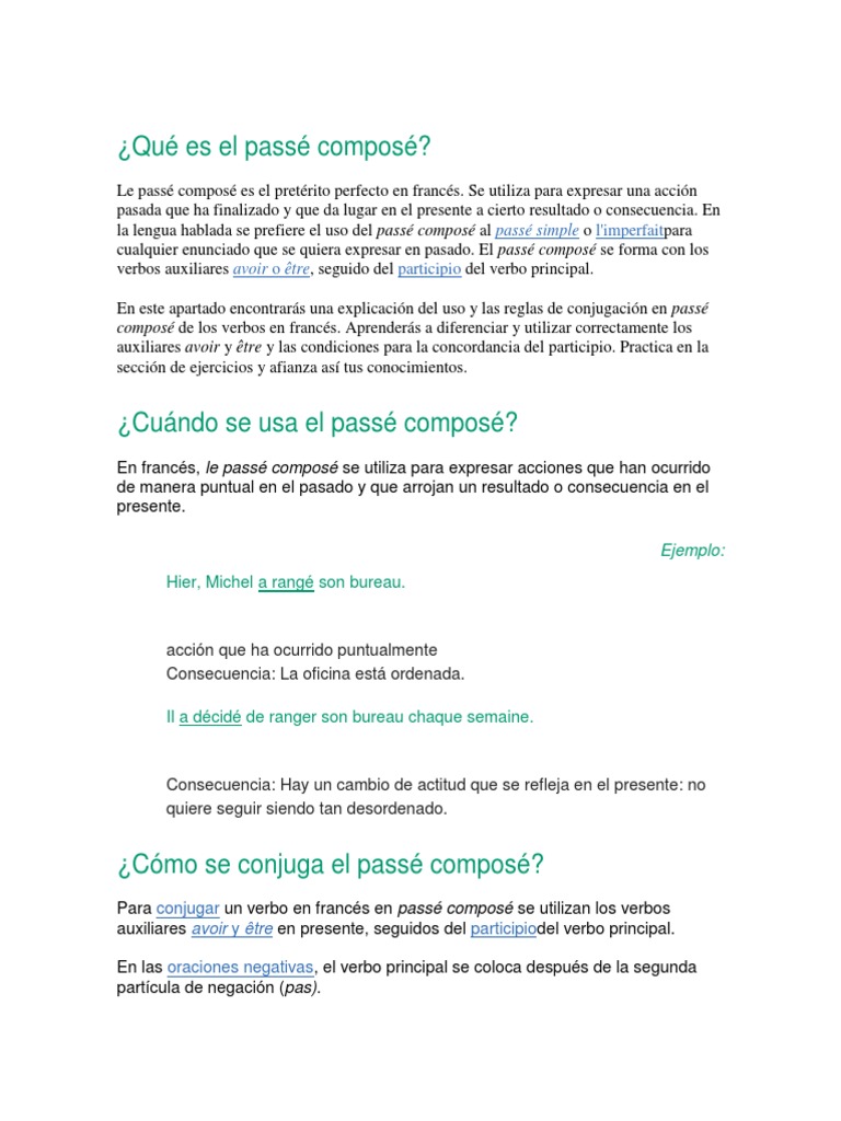 En este apartado encontrarás una explicación del uso y las reglas de conjugación en passé