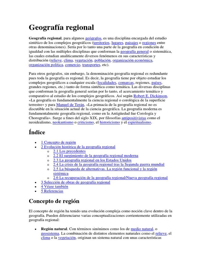 Geografía regional, para algunos geógrafos, es una disciplina encargada del estudio