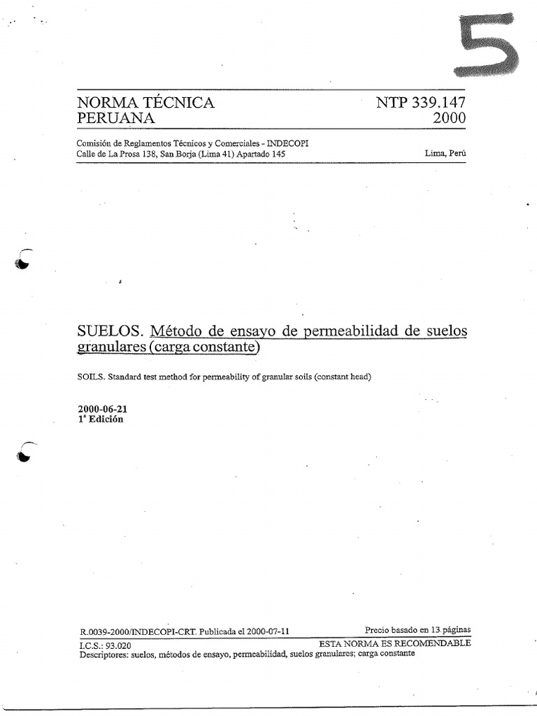 Descriptores: suelos, métodos de ensayo, permeabilidad, suelos granulares; carga constantey