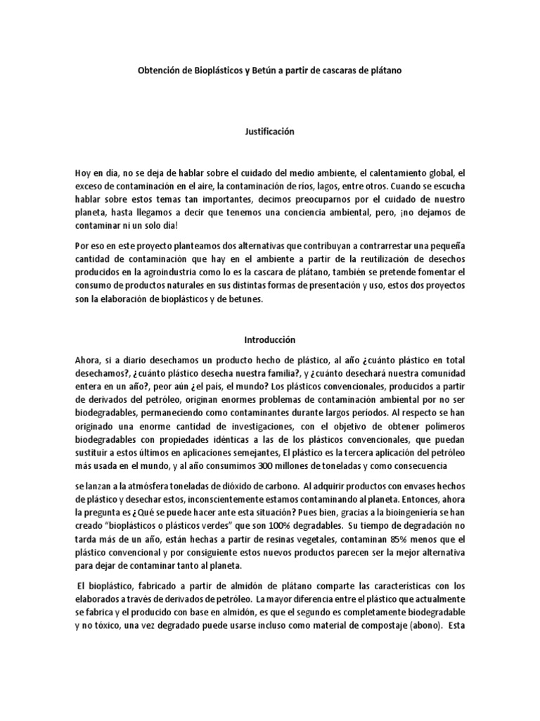 Bioplásticos y Betún de Cáscaras de Plátano
