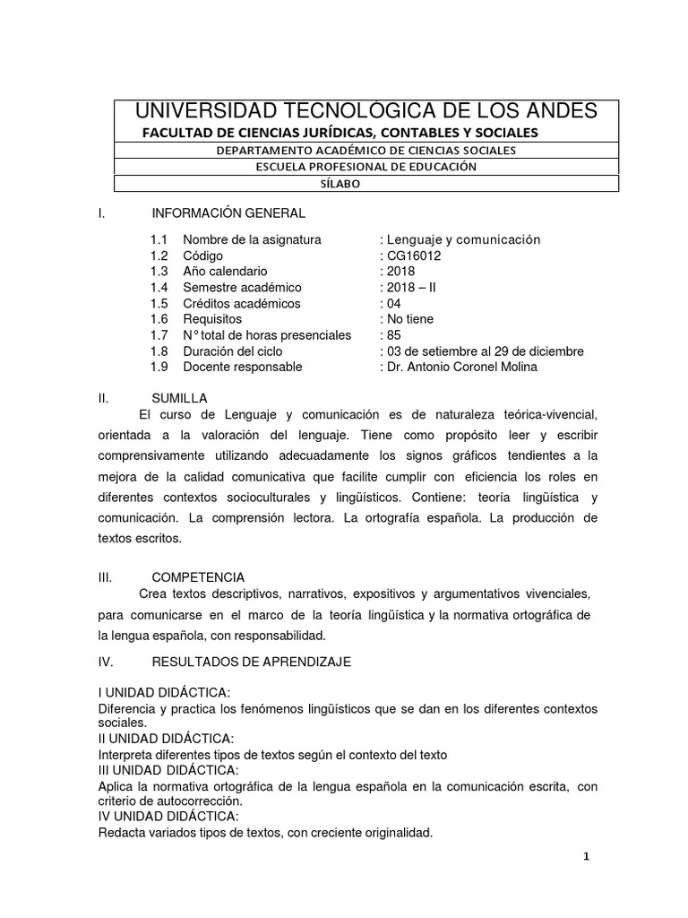 1.1 Nombre de la asignatura : Lenguaje y comunicación