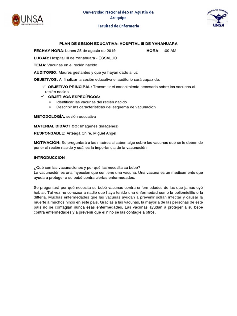 PLAN DE SESION EDUCATIVA: HOSPITAL III DE YANAHUARA