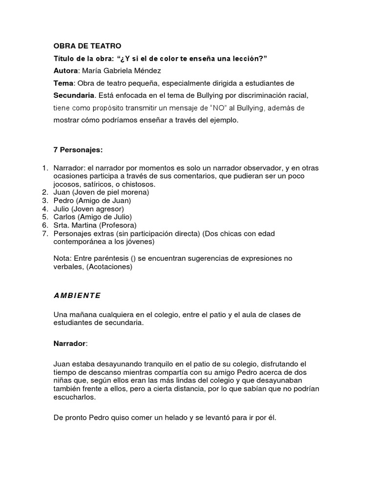 Tema: Obra de teatro pequeña, especialmente dirigida a estudiantes de