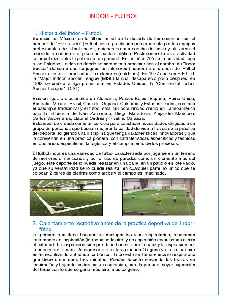El fútbol indor es una variedad de fútbol caracterizada por jugarse en un terreno