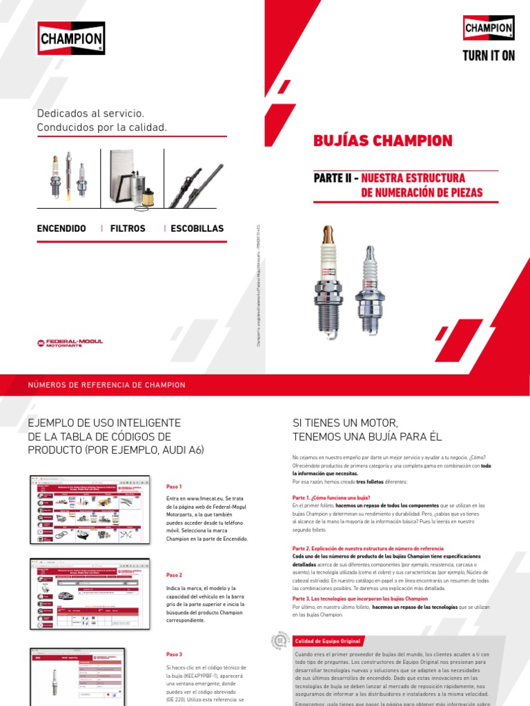 información específica de cada bujía. Descubre los componentes en las siguientes páginas.