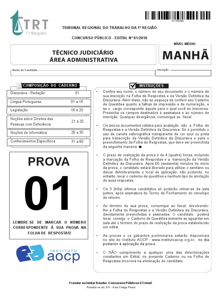 entanto, levar o caderno de questões e nenhum tipo de anotação
