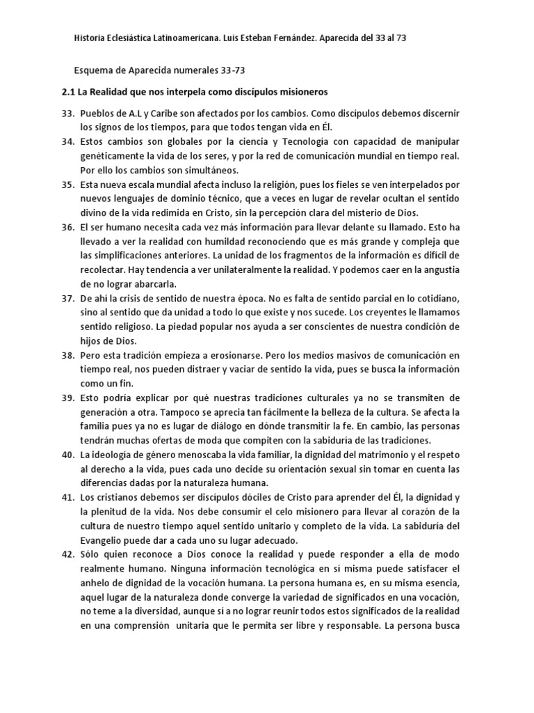 Historia Eclesiástica Latinoamericana. Luis Esteban Fernández. Aparecida del 33 al 73