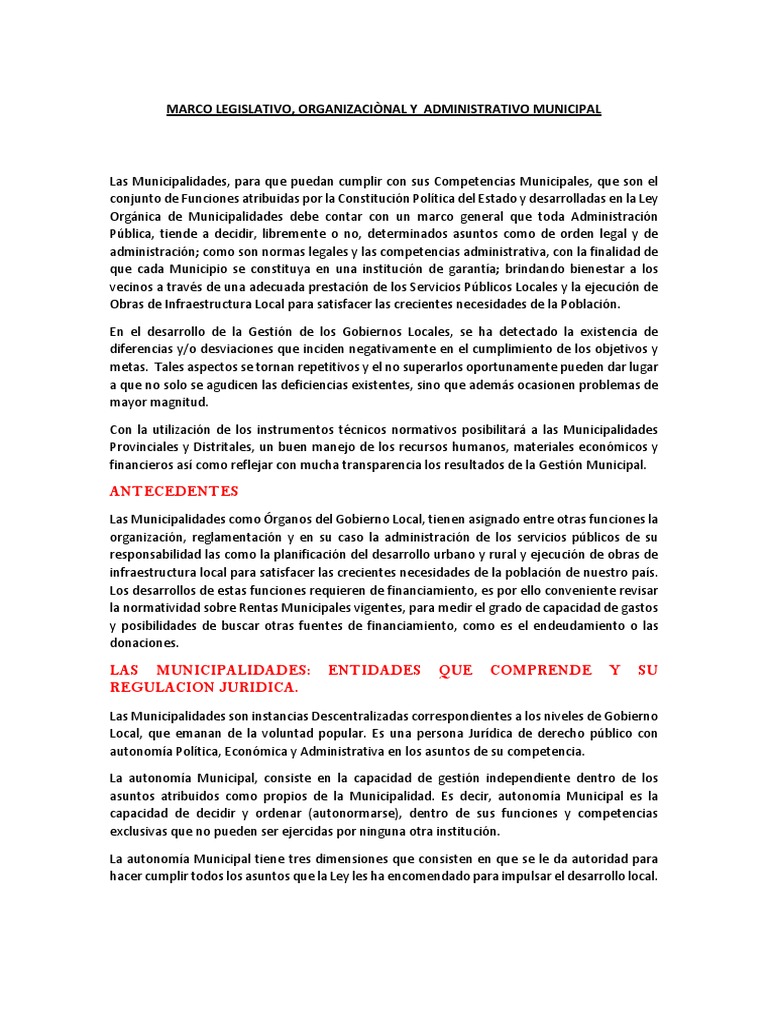 MARCO LEGISLATIVO, ORGANIZACIÒNAL Y ADMINISTRATIVO MUNICIPAL