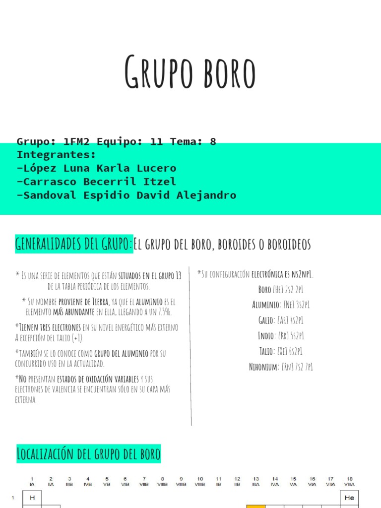 GENERALIDADES DEL GRUPO:El grupo del boro, boroides o boroideos