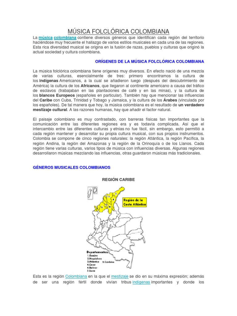 ORÍGENES DE LA MÚSICA FOLCLÓRICA COLOMBIANA