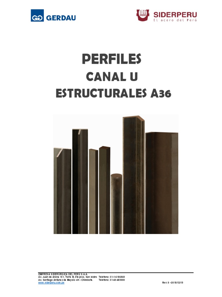 Producto de acero laminado en caliente de calidad estructural A36, de sección en forma de “U”.