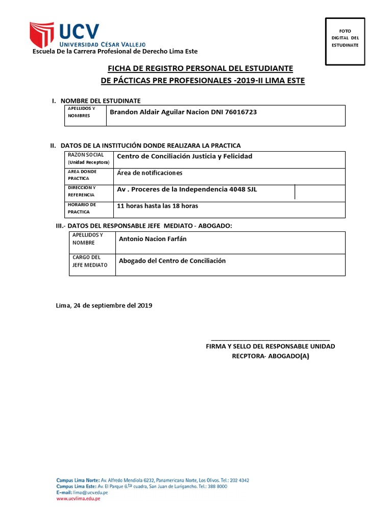 FIRMA Y SELLO DEL JEFE MEDIATO DE LA UNIDAD RECEPTORA-ABOGADO FIRMA Y SELLO DEL SUPERVISOR DE LA UCV