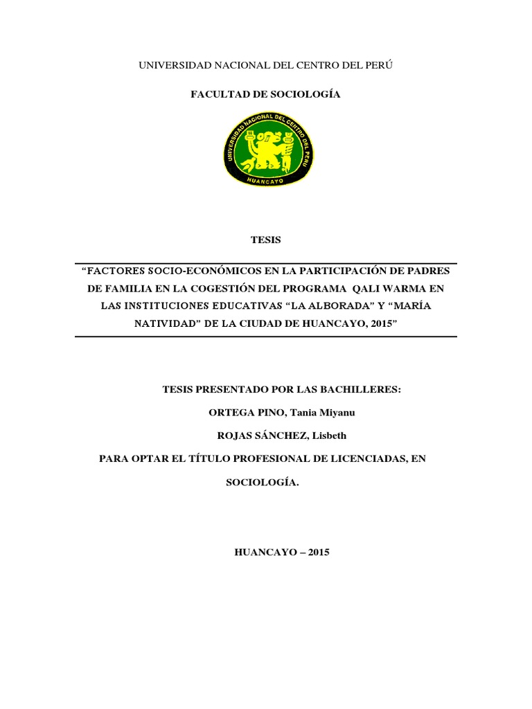 La tesis titula Factores socio-económicos en la participación de Padres de