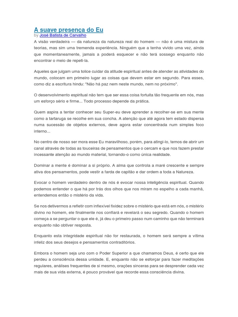 No centro de nosso ser mora esse Eu maravilhoso, porém, para atingi-lo, temos de abrir um