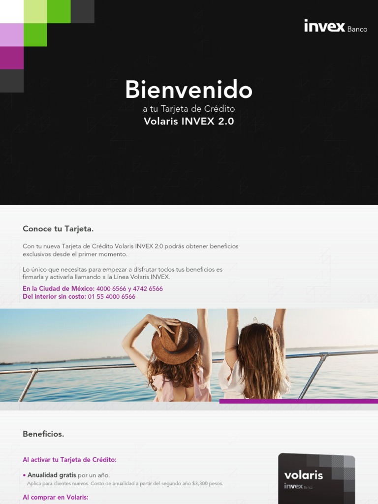 Con tu nueva Tarjeta de Crédito Volaris INVEX 2.0 podrás obtener beneficios