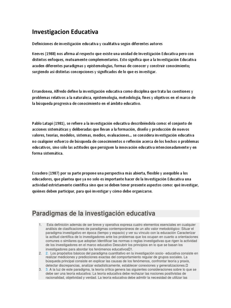 Errandonea, Alfredo define la investigación educativa como disciplina que trata las cuestiones y