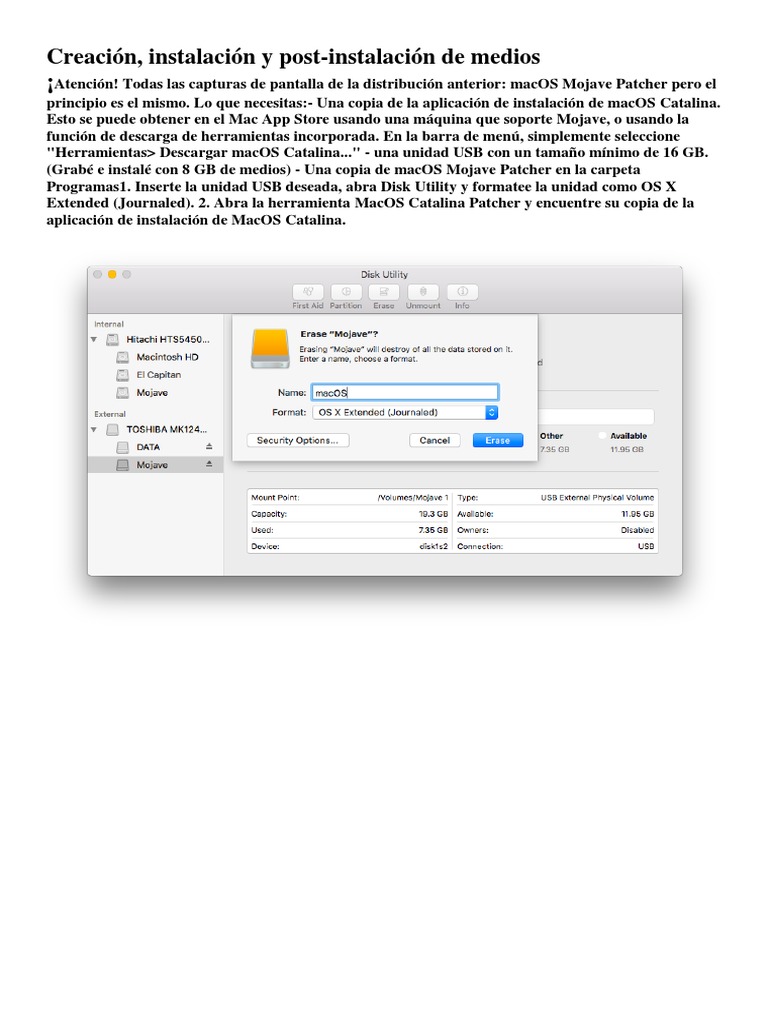 partición en la que desea instalar y quítela para utilizar Mac OS Extended (Journaled) o APFS como tipo de