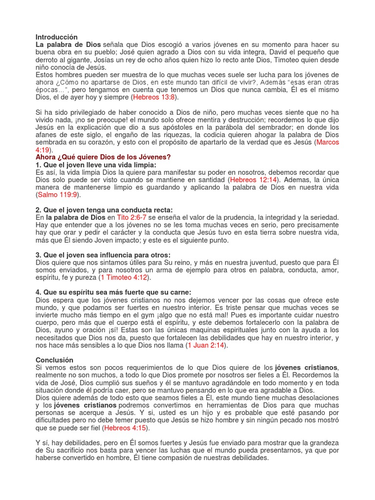 Si vemos estos son pocos requerimientos de lo que Dios quiere de los jóvenes cristianos,
