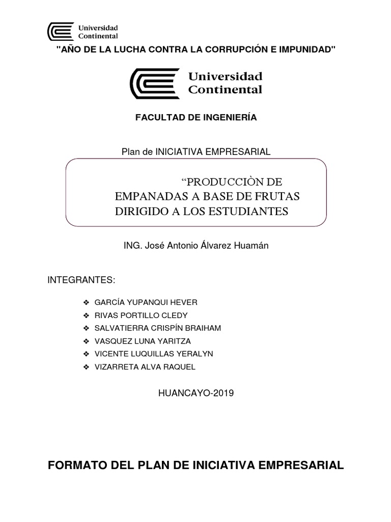 FORMATO DEL PLAN DE INICIATIVA EMPRESARIAL