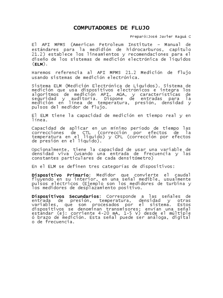 Haremos referencia al API MPMS 21.2 Medición de flujo