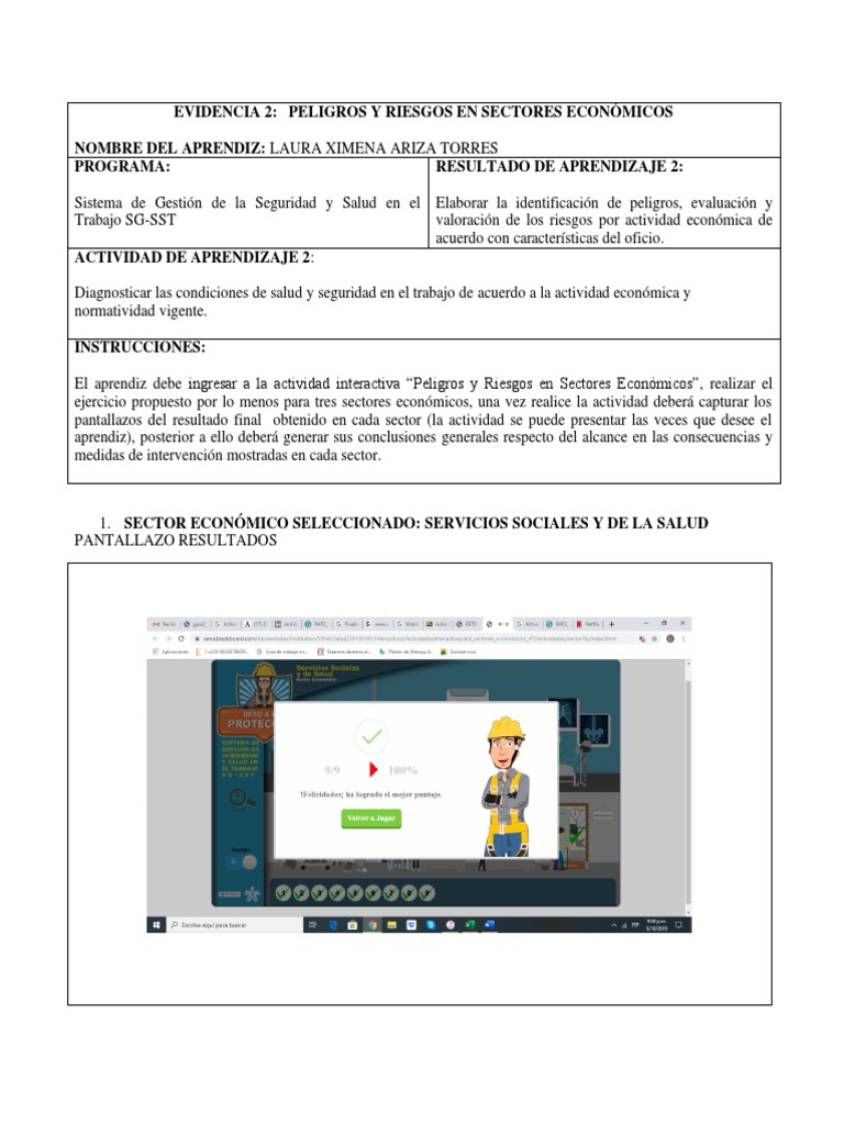 EVIDENCIA 2: PELIGROS Y RIESGOS EN SECTORES ECONÓMICOS