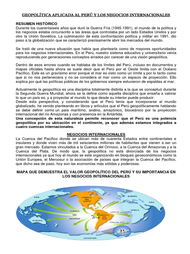 GEOPOLÍTICA APLICADA AL PERÙ Y LOS NEGOCIOS INTERNACIONALES