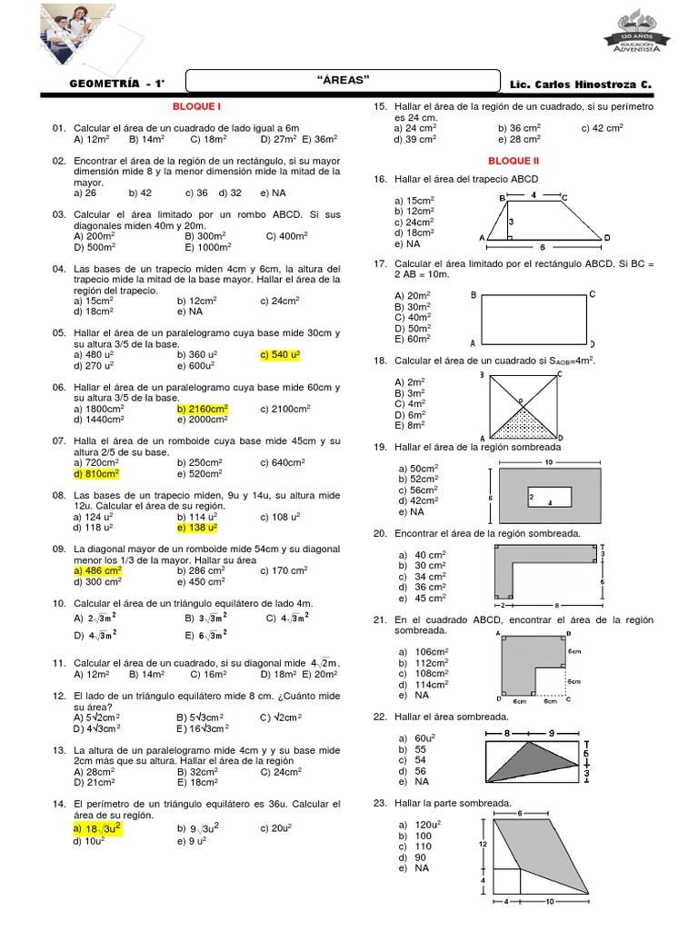 GEOMETRÍA - 1° “ÁREAS” Lic. Carlos Hinostroza C.