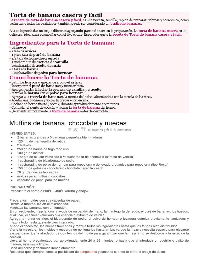 La receta de torta de banana casera y facil, es una receta, sencilla, rápida de preparar, sabrosa y económica, como