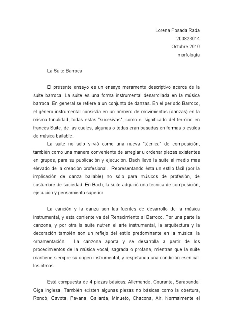 suite barroca, con el fin de exponerla ante el lector de una manera clara y