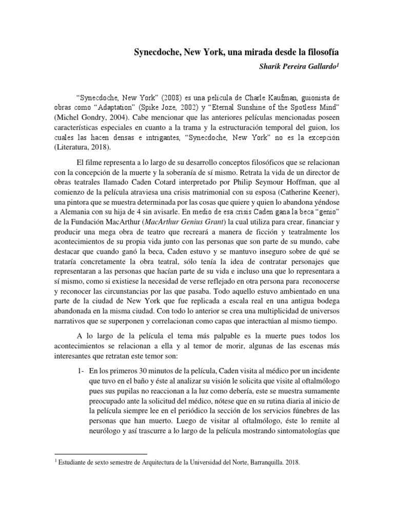 Literatura, C. y. (20 de febrero de 2018). Cine y literatura. Obtenido de “Synecdoche, New York”: