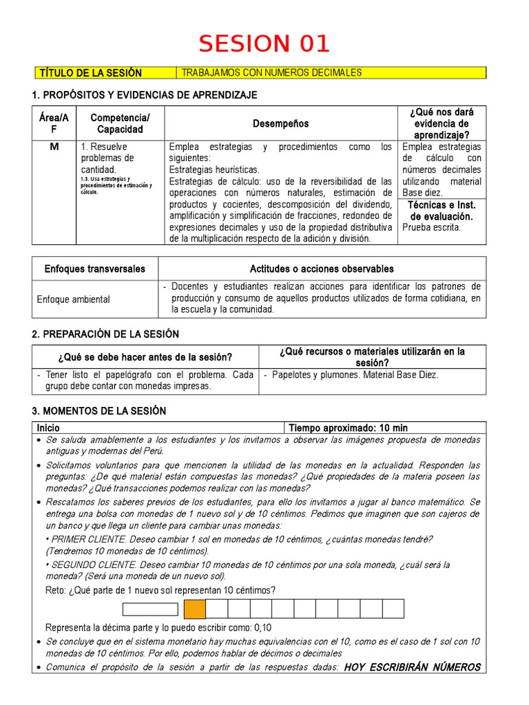 Sesiones de Matematica de La Unidad